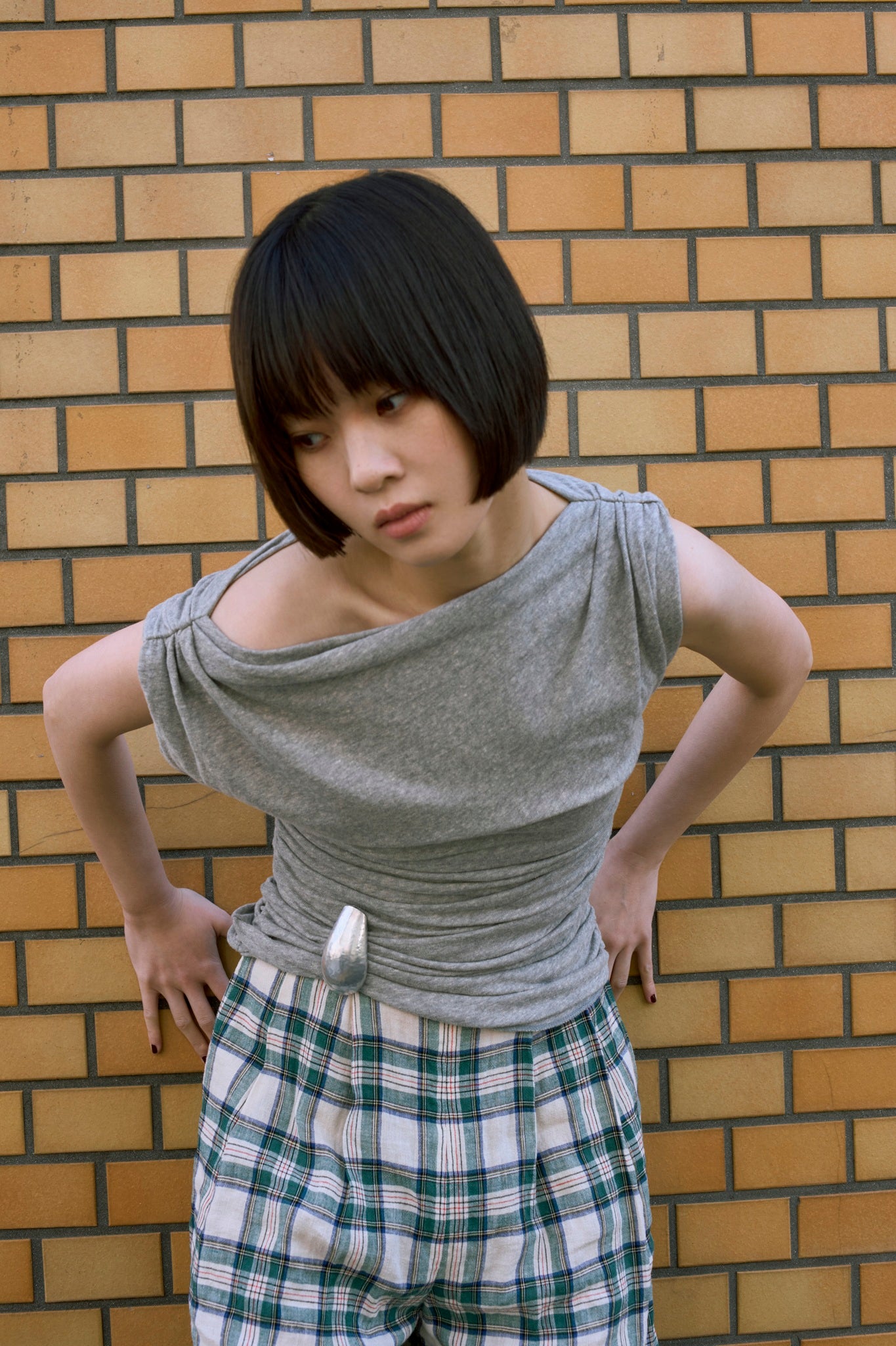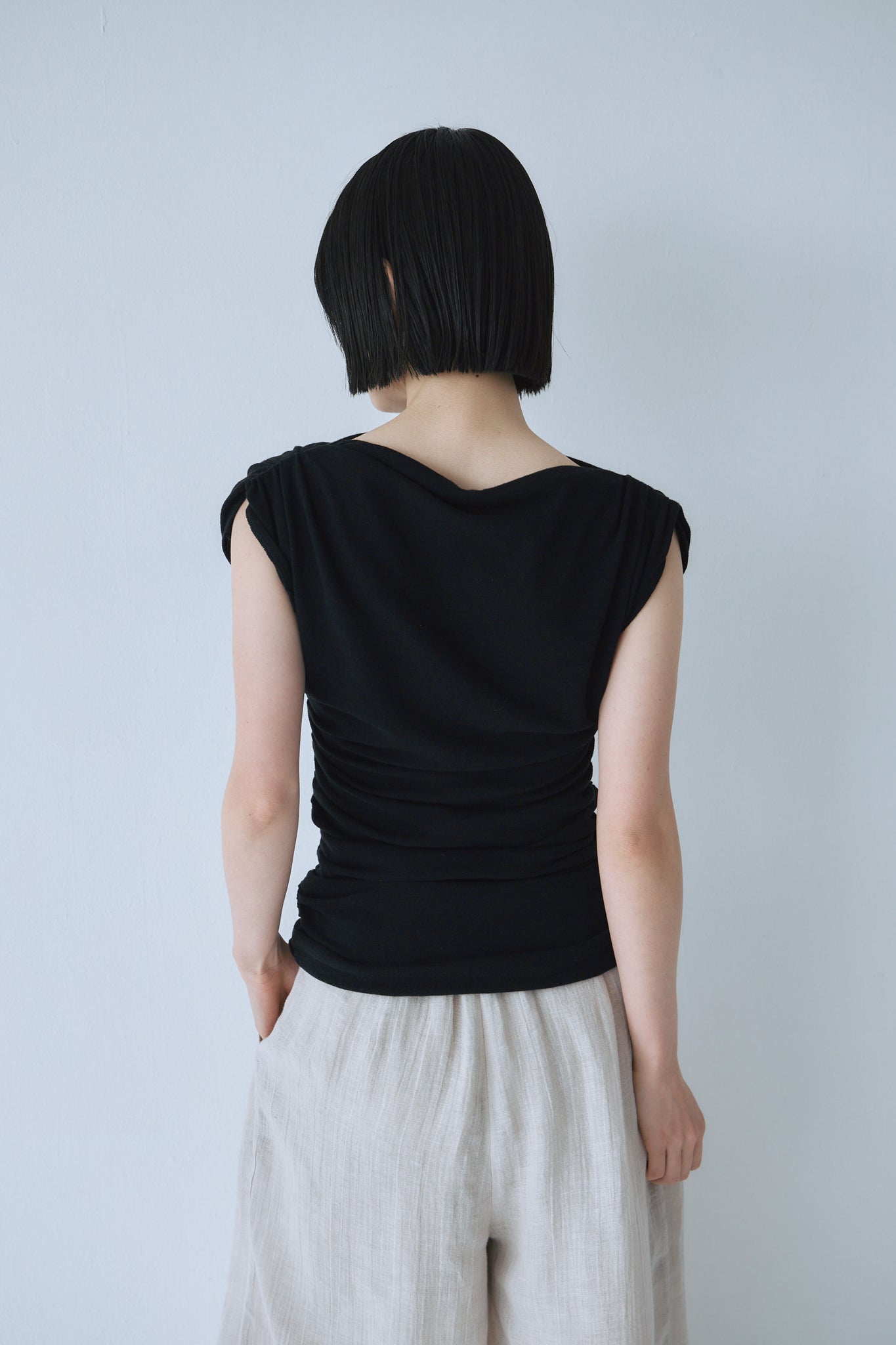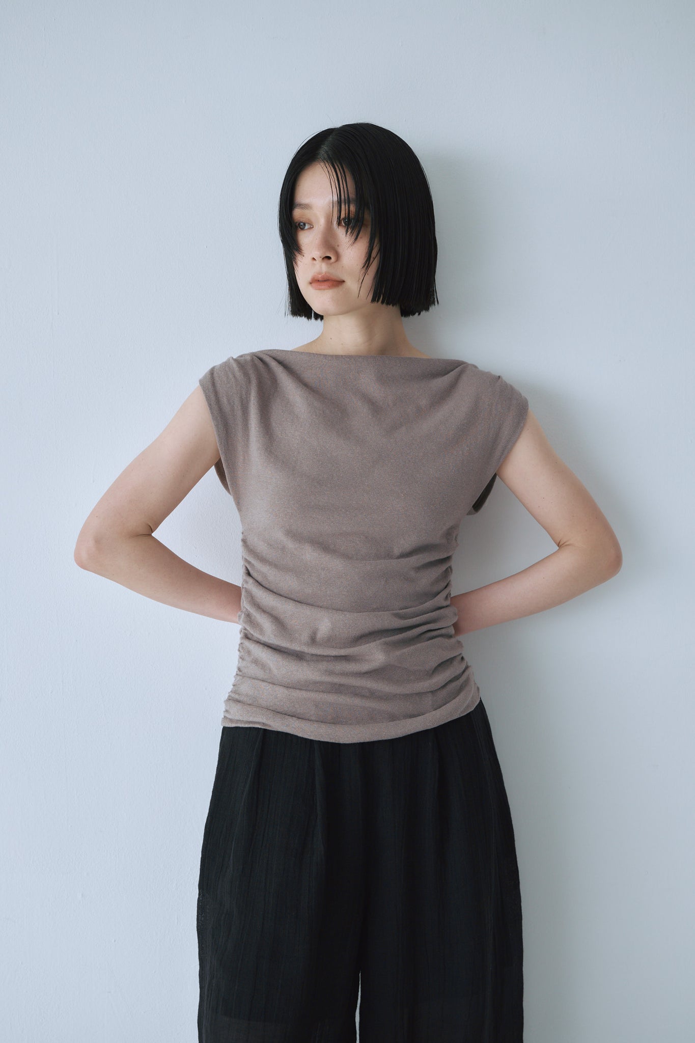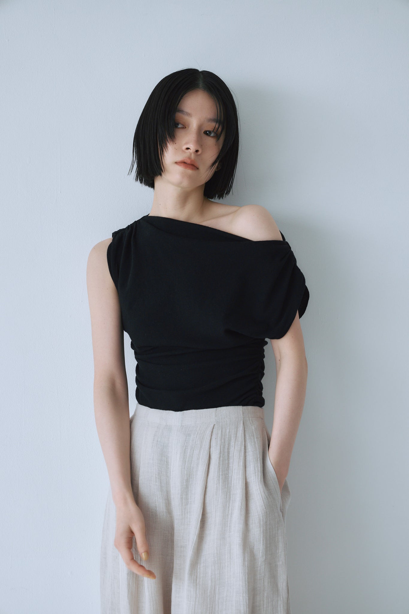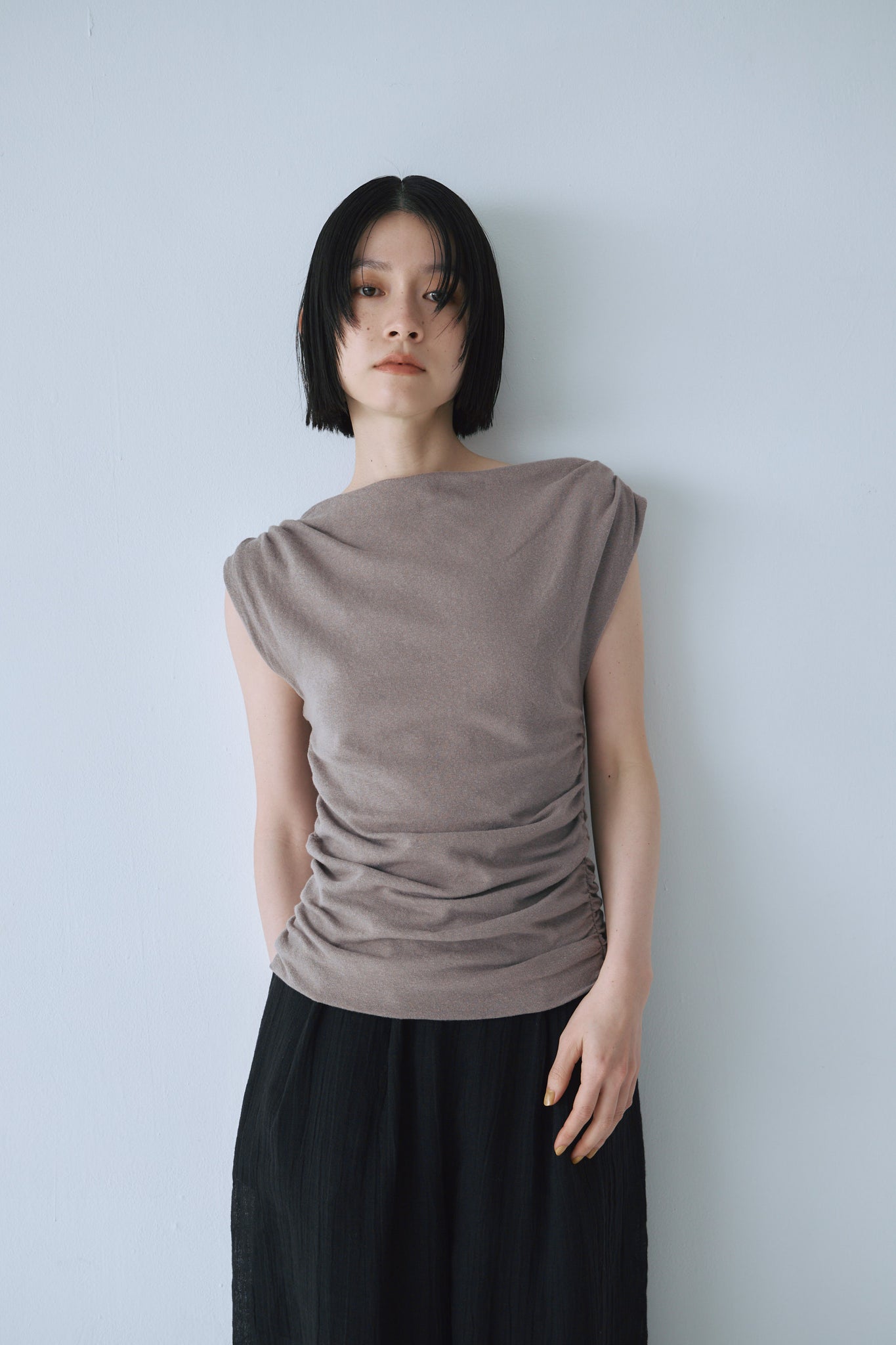 程よいネップが混じった肌に吸い付くようにしなやかで柔らかいベア天を使用したギャザートップス。