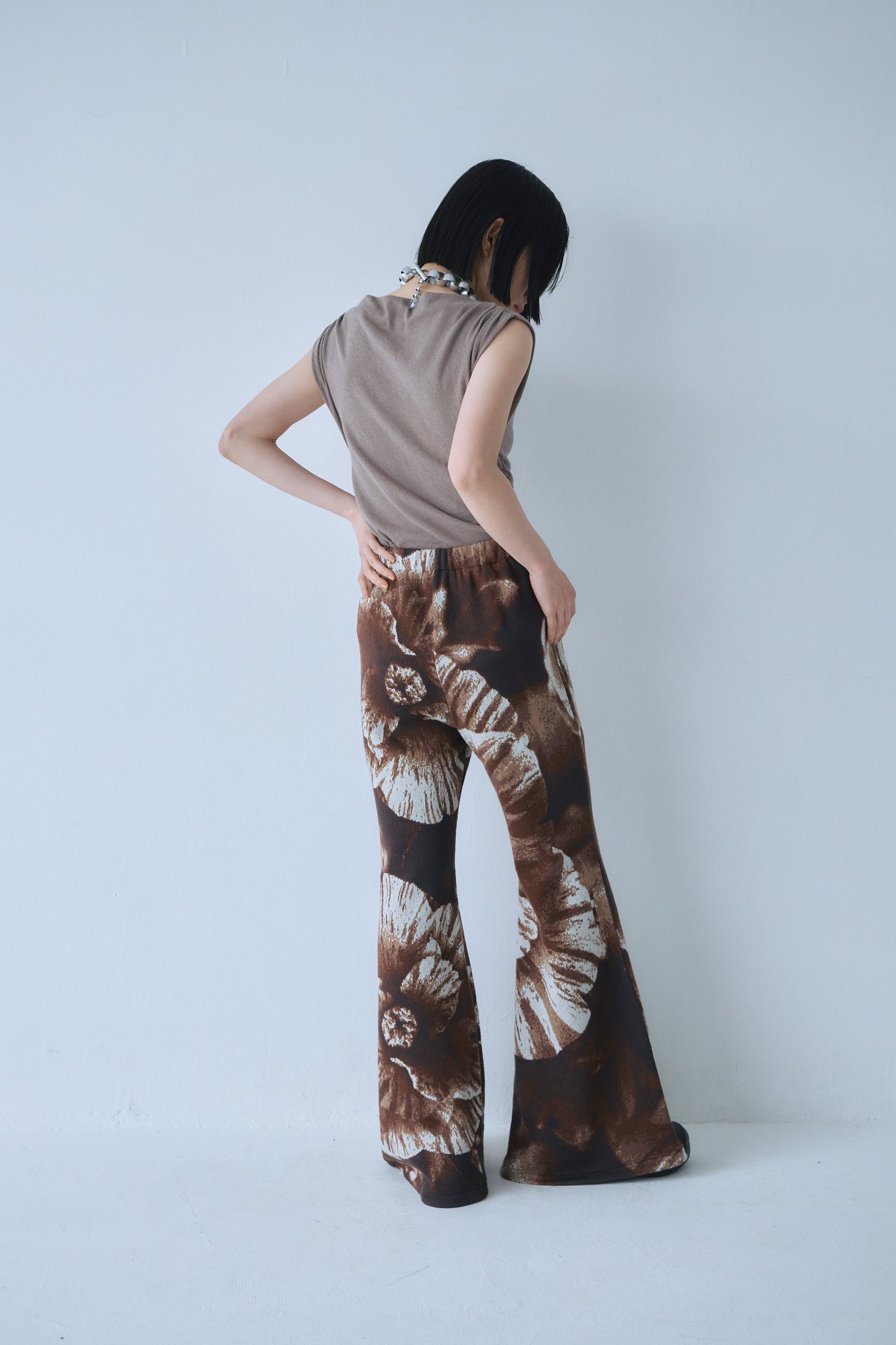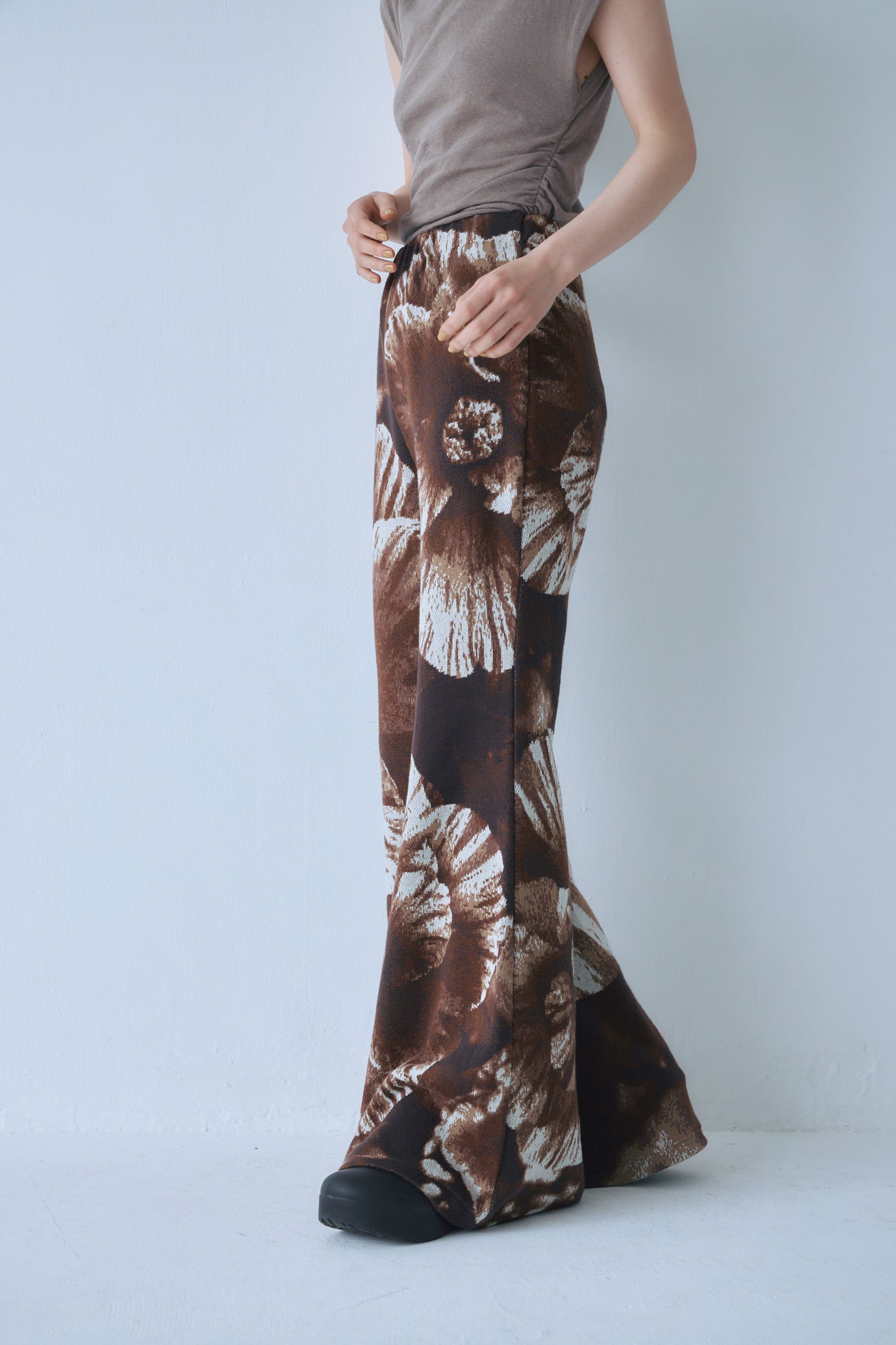 写真をジャガードニットで表現したベルボトム。