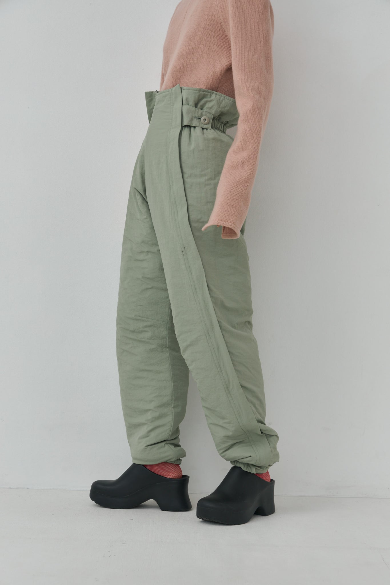ライナーパンツの無骨さを残しながらスマートなシルエットに仕上げた Reversible Warm Pants 。